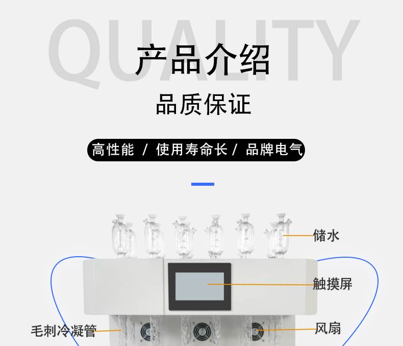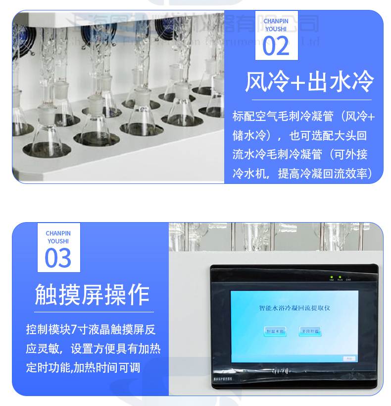 6、標配空氣毛刺冷凝管(風冷+儲水冷),也可選配大頭回流水冷毛刺冷凝管(可外接冷水機,提高冷凝回流效率);