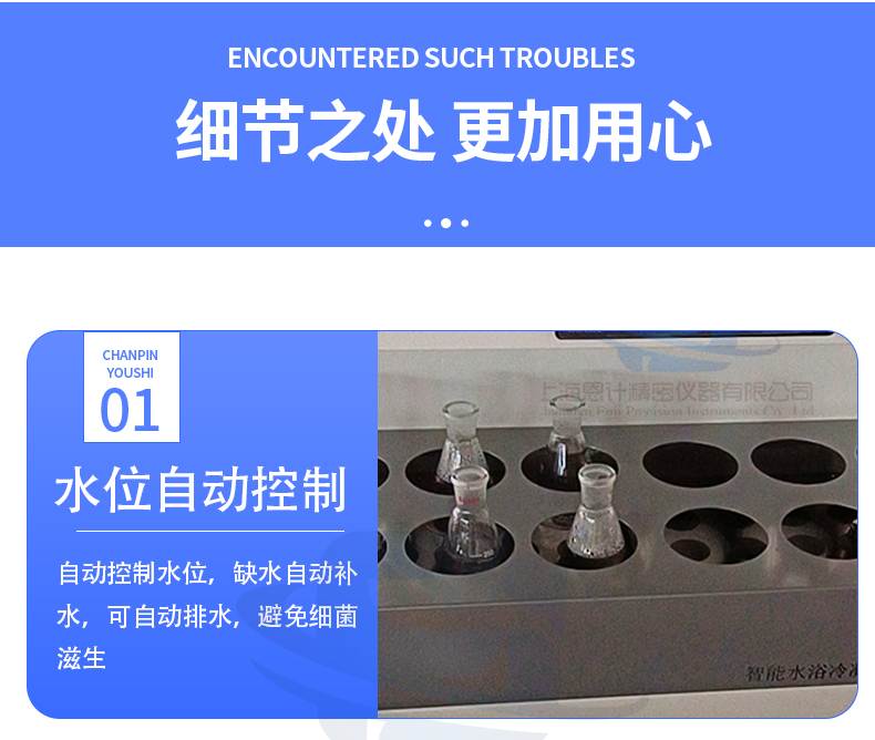 水浴控制:自動進水、自動排水、缺水自動報警補水