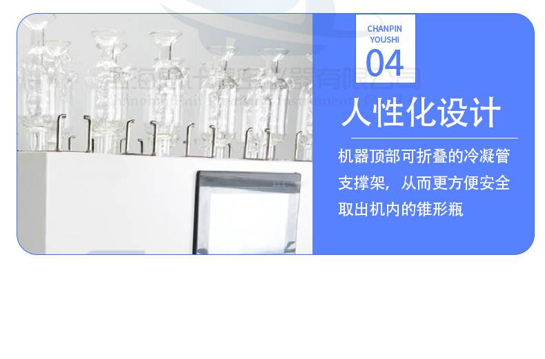 8、機器頂部可選配可折疊的冷凝管支撐架,從而更方便安全取出機內的錐形瓶。